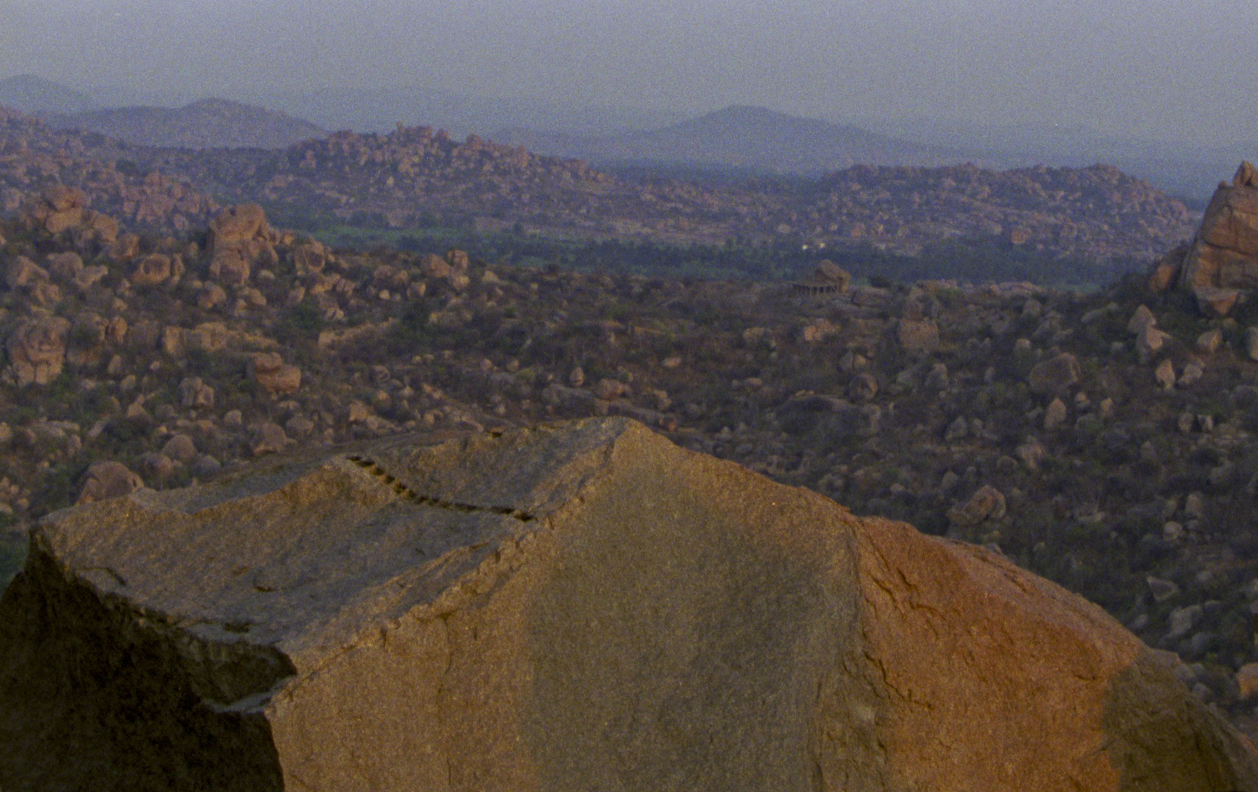 Langurs contemplate their world as it changes around them. The film is shot in Hampi, India, in the remains of a 14th-century city. This city, strewn with ancient ruins and massive boulders, some of the oldest in the world, is also said to be the mythic monkey kingdom of ancient lore. Currently, the site is overrun with langurs, a genus of “old world monkeys”. The film playfully interrogates various intersections between ancient and geological timescales, the real and mythic, the lived and preserved, and human and animal.